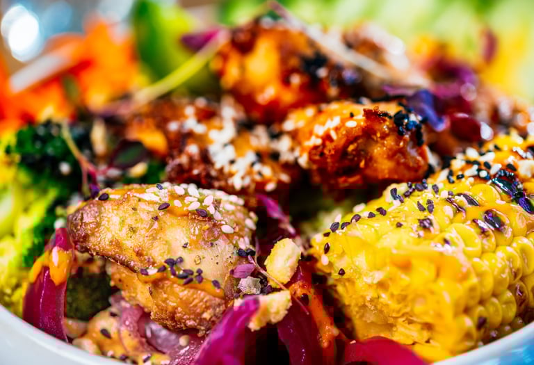 Served with flatbread, crispy vegetable salad, tzatziki & curry oil